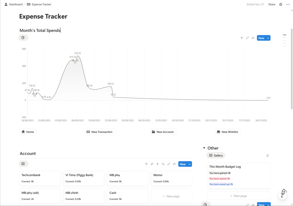 Please note that the Expense Tracker requires uses of automations and charts, which may not be suitable for Notion free plan.